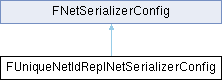 Inheritance diagram for FUniqueNetIdReplNetSerializerConfig:Additional Inherited Members | |