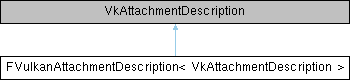 Inheritance diagram for FVulkanAttachmentDescription< VkAttachmentDescription >:Public Member Functions | |