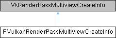 Inheritance diagram for FVulkanRenderPassMultiviewCreateInfo:Public Member Functions | |