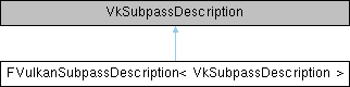 Inheritance diagram for FVulkanSubpassDescription< VkSubpassDescription >:Public Member Functions | |