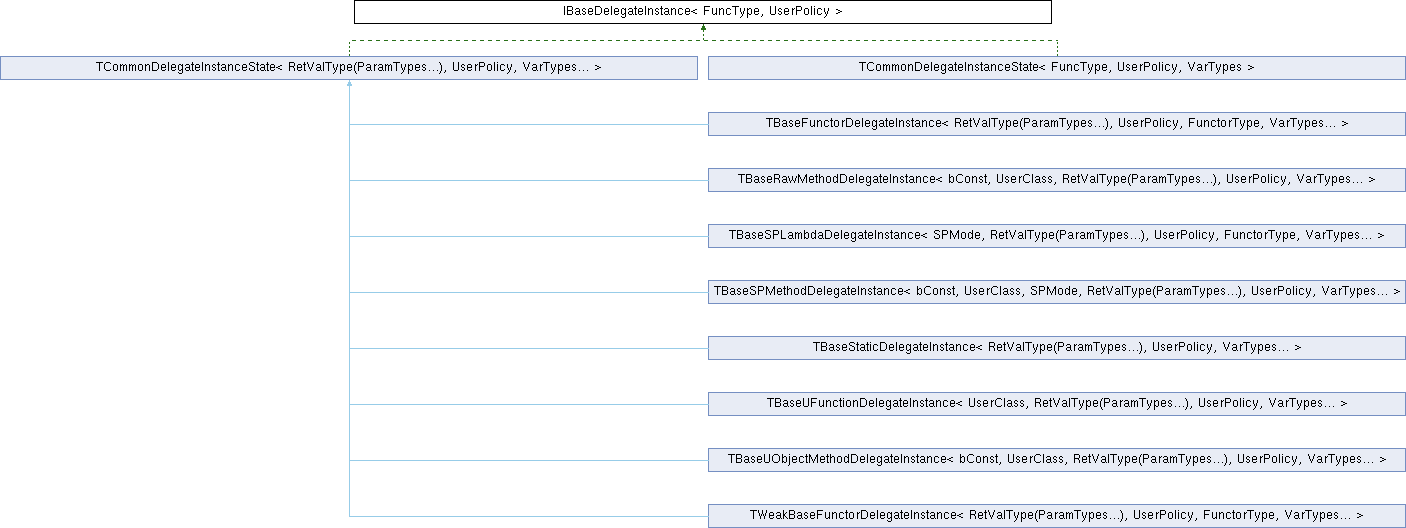 Inheritance diagram for IBaseDelegateInstance< FuncType, UserPolicy >: