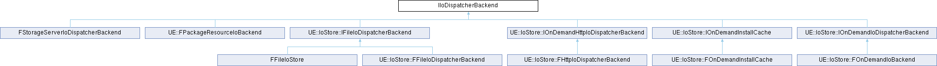 Implemented in UE::FPackageResourceIoBackend, UE::IoStore::FHttpIoDispatcherBackend, UE::IoStore::FOnDemandIoBackend, UE::IoStore::FFileIoDispatcherBackend, FFileIoStore, and FStorageServerIoDispatcherBackend.