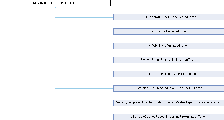 Inheritance diagram for IMovieScenePreAnimatedToken:Public Member Functions | |