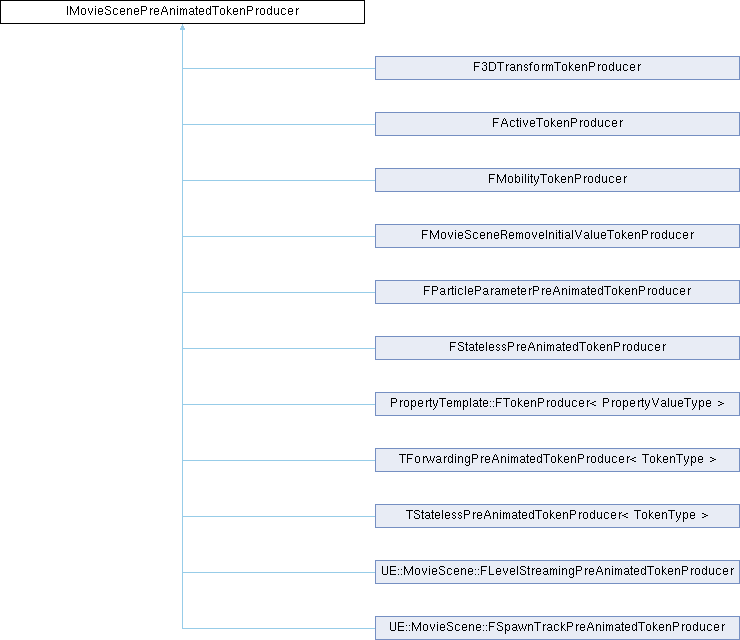 Inheritance diagram for IMovieScenePreAnimatedTokenProducer:Public Member Functions | |