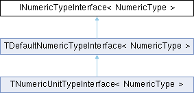 Inheritance diagram for INumericTypeInterface< NumericType >:Public Member Functions | |