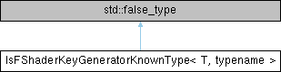 Inheritance diagram for IsFShaderKeyGeneratorKnownType< T, typename >:Template override for struct used in std::enable_if to report whether a type is a FShaderKeyGenerator known type with an Append member function. This template override provides the false value for non-known types.