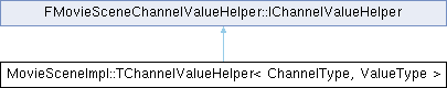 Inheritance diagram for MovieSceneImpl::TChannelValueHelper< ChannelType, ValueType >:Public Member Functions | |