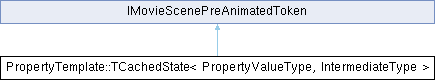 Inheritance diagram for PropertyTemplate::TCachedState< PropertyValueType, IntermediateType >:Public Member Functions | |