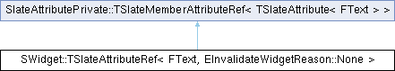Inheritance diagram for SWidget::TSlateAttributeRef< FText, EInvalidateWidgetReason::None >:
