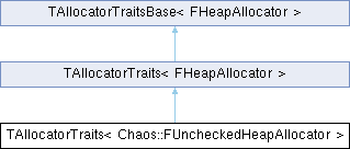 Inheritance diagram for TAllocatorTraits< Chaos::FUncheckedHeapAllocator >:Additional Inherited Members | |