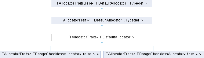 Inheritance diagram for TAllocatorTraits< FDefaultAllocator >:Additional Inherited Members | |