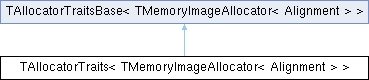 Inheritance diagram for TAllocatorTraits< TMemoryImageAllocator< Alignment > >:Public Types | |