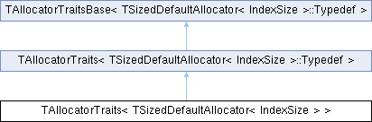 Inheritance diagram for TAllocatorTraits< TSizedDefaultAllocator< IndexSize > >:Additional Inherited Members | |