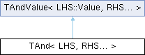 Inheritance diagram for TAnd< LHS, RHS... >:Additional Inherited Members | |