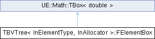 Inheritance diagram for TBVTree< InElementType, InAllocator >::FElementBox:Public Attributes | |