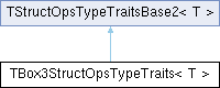 Inheritance diagram for TBox3StructOpsTypeTraits< T >:Public Types | |