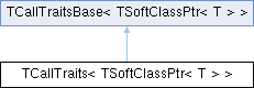 Inheritance diagram for TCallTraits< TSoftClassPtr< T > >:Public Types | |