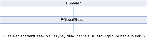Inheritance diagram for TClearReplacementBase< ValueType, NumChannels, bZeroOutput, bEnableBounds >:Static Public Attributes | |