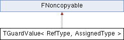 Inheritance diagram for TGuardValue< RefType, AssignedType >:Public Member Functions | |