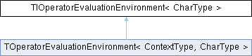 Inheritance diagram for TIOperatorEvaluationEnvironment< CharType >:Public Member Functions | |