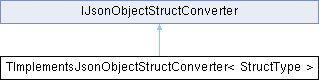 Inheritance diagram for TImplementsJsonObjectStructConverter< StructType >:Public Member Functions | |