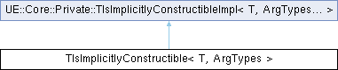 Inheritance diagram for TIsImplicitlyConstructible< T, ArgTypes >:Additional Inherited Members | |
