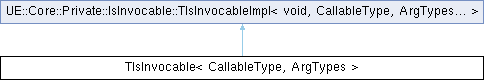 Public Types inherited from UE::Core::Private::IsInvocable::TIsInvocableImpl< void, CallableType, ArgTypes... > | |