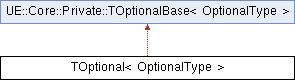 Inheritance diagram for TOptional< OptionalType >:Public Types | |