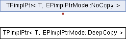 Inheritance diagram for TPimplPtr< T, EPimplPtrMode::DeepCopy >:Public Member Functions | |