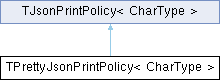 Inheritance diagram for TPrettyJsonPrintPolicy< CharType >:Static Public Member Functions | |