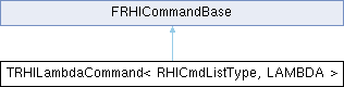 Inheritance diagram for TRHILambdaCommand< RHICmdListType, LAMBDA >:Public Member Functions | |