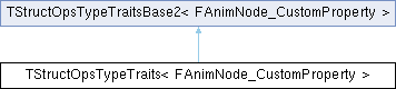 Public Types inherited from TStructOpsTypeTraitsBase2< FAnimNode_CustomProperty > | |