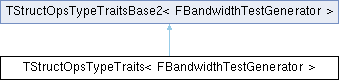 Inheritance diagram for TStructOpsTypeTraits< FBandwidthTestGenerator >:Public Types | |