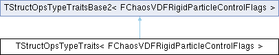 Inheritance diagram for TStructOpsTypeTraits< FChaosVDFRigidParticleControlFlags >:Public Types | |