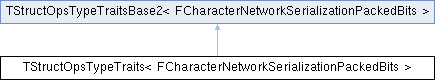 Inheritance diagram for TStructOpsTypeTraits< FCharacterNetworkSerializationPackedBits >:Public Types | |