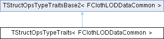 Inheritance diagram for TStructOpsTypeTraits< FClothLODDataCommon >:Public Types | |
