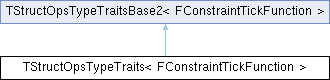 Inheritance diagram for TStructOpsTypeTraits< FConstraintTickFunction >:Public Types | |