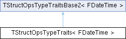 Inheritance diagram for TStructOpsTypeTraits< FDateTime >:Public Types | |