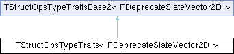 Inheritance diagram for TStructOpsTypeTraits< FDeprecateSlateVector2D >:Public Types | |