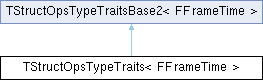 Inheritance diagram for TStructOpsTypeTraits< FFrameTime >:Public Types | |