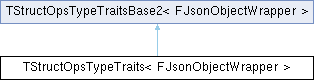 Inheritance diagram for TStructOpsTypeTraits< FJsonObjectWrapper >:Public Types | |