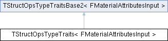 Inheritance diagram for TStructOpsTypeTraits< FMaterialAttributesInput >:Public Types | |