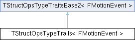 Inheritance diagram for TStructOpsTypeTraits< FMotionEvent >:Public Types | |
