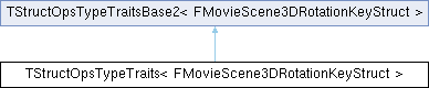 Inheritance diagram for TStructOpsTypeTraits< FMovieScene3DRotationKeyStruct >:Public Types | |