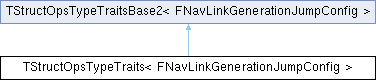 Inheritance diagram for TStructOpsTypeTraits< FNavLinkGenerationJumpConfig >:Public Types | |