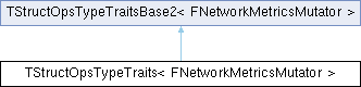 Inheritance diagram for TStructOpsTypeTraits< FNetworkMetricsMutator >:Public Types | |