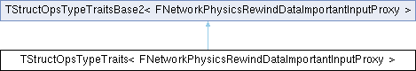 Inheritance diagram for TStructOpsTypeTraits< FNetworkPhysicsRewindDataImportantInputProxy >:Public Types | |