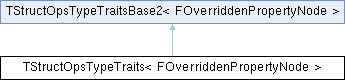 Inheritance diagram for TStructOpsTypeTraits< FOverriddenPropertyNode >:Public Types | |