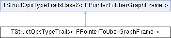 Inheritance diagram for TStructOpsTypeTraits< FPointerToUberGraphFrame >:Public Types | |