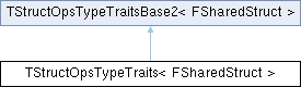 Inheritance diagram for TStructOpsTypeTraits< FSharedStruct >:Public Types | |
